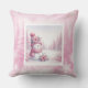 Sweet Pink Snowman Pillow Cute Christmas Scene Kudde