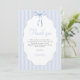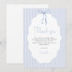 Elevate your baby shower celebration with our chic and trendy thank you cards. Sporting sophisticated blue pinstripes, a sweet watercolor blue ribbon tied into a bow, these invites eloquently merge style and elegance.