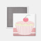 En yummin cupkaka med rosa frost i en rosa stomme med en munvattnande körsbär på ovansidan. En gräns av rosa rand bakom sig!