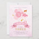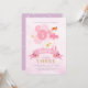 Personlig ballerina-temafödelsedagsinbjudan till rosa och guld med lila tillbaka. Ballerina i söt rosa tutu, simulerade glitterballonger i guld vingar och rosa. Söt, gigantisk, chic och elegant. Kommer med fram- och bakåtdesign. Anpassa med information om namn, ålder och party. Alternativ för Ballerina-bilder finns tillgängliga. Perfekt för temaparty av balett eller mejeriprodukter.