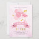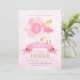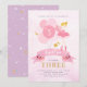 Personlig ballerina-temafödelsedagsinbjudan till rosa och guld med lila tillbaka. Ballerina i söt rosa tutu, simulerade glitterballonger i guld vingar och rosa. Söt, gigantisk, chic och elegant. Kommer med fram- och bakåtdesign. Anpassa med information om namn, ålder och party. Alternativ för Ballerina-bilder finns tillgängliga. Perfekt för temaparty av balett eller mejeriprodukter.