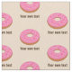 En mönster av rosa frodade munkar på en beige (ändra som helst) bakgrund. Ring-donmenten paras med en anpassningsbar fält för att du ska kunna anpassa dig om du vill. Om du bara vill ha mat i mönster, raderar du bara exempeltexten och lämnar bara grafiken mönster.