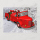 Bakgrunden till färg kan ändras: CUSTOMIZE IT pappa jul vandrar glatt ut ur ett gammalt rödbrand lastbil, transporterar julgran och en stor säck fullt presenter för alla bra barn och människor i hjärtat