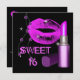 Sweet sixteen 16 Shock rosa svart, svart, Läppar-p Inbjudningar