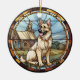 Sweet Stached Glass German Shepherd Hund Julgransprydnad Keramik