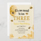 Sweet to Bee Three Honeycomb Bees Third Birthday Inbjudningar