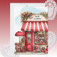Personalize your special Valentine with this sweet flat card printed with a quirky little flower shop filled with lots of cute little hearts and potted flowers details. Watercolor style illustration has an abstract pastel background front and back. Just edit your name text on the shop front. Created in a palette of mostly reds and white colors, with your choice card edge styles and sizes.