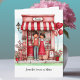 Personalize your Valentine for him or her on this sweet folded greeting card printed with an adorable couple and their quirky little shop scene filled with lots of tiny hearts, balloons and flowers details. Edit your names, monograms and other text front and inside. Watercolor style illustration has an abstract pastel background front and back. Created in a palette of mostly red and pink colors, with your choice of sizes.