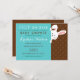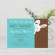 Du kommer att hoppa med glädje när du firar med den här förfärligt söta inbjudan till babyskor! Det har en söt vit bunny som kikar över ett tårblått ram med en brun polka punktbakgrund.