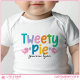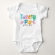 Dress your baby in style with this adorable customizable baby bodysuit. Featuring playful lettering in bright colors, fun typography that says, "Tweetie Pie," and cute birds holding flowers, this simple text design radiates sweetness and charm. This design allows you to modify the name, making it perfect for celebrating a baby’s arrival, creating a memorable baby shower gift, or for sharing exciting news as a pregnancy announcement for proud grandparents-to-be. This design will make a delightful keepsake. Whether you’re welcoming a newborn or gifting a new mom, this charming bodysuit is sure to bring smiles all around.