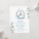 Gather your loved ones to celebrate a "sweet little goose on the loose" with this enchanting Silly Goose Baby Shower Invitation. This design features a precious watercolor gosling dressed in a soft blue pajama set and matching nightcap, quietly reading a book with a tiny bunny friend. The scene is nestled within a delicate floral wreath of dusty blue blooms and golden wildflowers, elegantly draped with a flowing cream ribbon and a voluminous blue polka-dot bow.