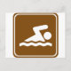 Vägskylt och skylt över motorvägar i internationell som ger råd om fritidsanläggningar, särskilt simma.