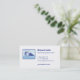 Ett affärskort med en logotyp av en blå konst av en simmare med googlar och simma som simmar mellan vågar. Perfekt för siminstruktörer och livräddningsarbetare. Anpassa enkelt informationen i de textmallar som finns.