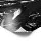 Ett svart och vitt foto av en havssköldpadda som simmar nära en korallrev på ett fototryck.