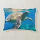 Undervattensfotografi av en havssköldpadda som simmar i kristallklar vatten strax under yta.
