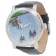 Folk har en svängning i en nöjespark, högt över marken med ett Ferris-hjul synligt bredvid sig. Färgfyllda sittplatser och grönt kan göra scenen vidrig mot ett tydligt blå himmel. Detta är en variation på karusellen där sätena är upphängda från karusellens roterande överdel.