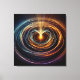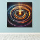 En visning som mäter när man vrider ljus i vågar kommer från en mittpunkt som skapar ett dynamiskt, cirkulärt mönster i pulverblått, orange och gult. Det invecklade linjer föreslår rörelse och energi, som liknar ett digitalt fenomen i kosmisk eller abstrakt.