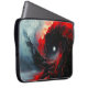 Laptop sleeve har en röd och svart vridningsformgivning på sig.
