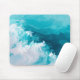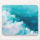 The image presents an abstract depiction of ocean waves, rendered in shades of turquoise, teal, and white. The waves appear dynamic and textured, with swirling patterns and foamy crests. The color palette evokes a sense of freshness and tranquility. The overall composition is fluid and organic, resembling a close-up view of turbulent water.