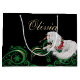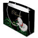 presentpåse | Swirls och Snöflingor Grönt och Guld grund gräns i svart är en slående helgdag. Stora manusjor på framsidan och på ställe för ett namn, text eller bara stryk det här alternativet på baksidan och vit enhörning är försedd med en poinsettia och en hollisk julkrans runt hennes nacke och en röd horn från spiral och guld, med lång flyt mane och svan. - Vi väljer en svart bakgrund, du kan välja ett annat färg om du vill - detta är en del av en blandning och matcha Magic Unicorn-julsamlingen.