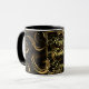Modern kalligrafi i guld på ett svart mugg med snurrar är bara höger för Fars dag-gåva. I bilden visas gyllene vridningar på en svart inställning. Texten i mitten har blommigten gräns och är anpassade.
