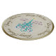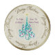 Vackra karcuteriskivor med en originaldigital målning av Leslie Sigal Javorek av en snabb turkos av Julgran med violetta dekorationer på en Trompe L'oeil (öga-trick) bakgrundsillusion av brans china av ben och underbarare djup. 2 anpassningsbars text fält för att anpassa plåt för en underbar gåva.
