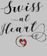 Oavsett om du eller din familj kommer från Schweiz, har bott där eller bara har besökt kärlek allt schweiziskt, här är en design för dig, med texten "Swiss At Heart" i ett skrivet snyggt och flagga i ett hjärta