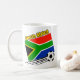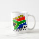 Visa din pride i söderna - afrikanskt fotbolllag vid köpande denna gåva som presenterar söderna - den afrikanska flagga, landnamn Sydafrika och ett fotbollbollflyg över grunden av flagga