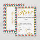 Svarskort för OSA i elegant bröllop med gräns i södra AFRIKA KARTA i sidled mönster och guld. Det omvända budskapet lyder: "Och de två skall bli ett". Matchande objekt är tillgängliga. Texten kan anpassas helt och hållet med ditt eget meddelande och innehåll. Kan användas både för bröllop och för andra firande. Var stolt över ert arv på er speciella dag.