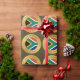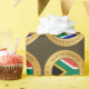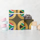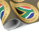 Den sydafrikanska flagga är indragen i ett rundat faux guld ring. "Sydlig Afrika" i ord finns längst upp och grund i konstruktionen och har en tryckeffekt. Paret med tre dekorativa stjärnor från varandra är också designat med en tryckt effekt.