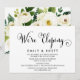 Detta sydliga blommiga elopement-mottagningskort med kalligrafi är perfekt för en modern efter-elopementsfest. Designen har rustik men elegant svart-vit typografi med vackra vita akvarellblommor på baksidan. RSVP-kort säljs separat.