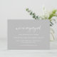 Modern bröllop spara datum-kort med en contemporary typografisk design med "vi är engagerade" i elegantens skripttypografi. Nedan visas händelseinformationen i en enkel och minimal layout. Temat färg är skiffer-grått och kan ändras i designredigeringen av verktyg.