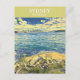 Resevykort från Sydney Harbour skyline i en modern färglös stil i resekonsten. Blå himmel och blå gnistrande vatten på en hett Sommardag i Sydney, Australien. Från ett original.