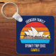 Personlig Australiens nyckelkedja för semesterkeepsaki med operashuset Sydney framför en australisk solnedgång ovanför coola blå vatten. Cute anpassningsbar-familjen resa souvenir.