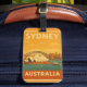 Escape to the sun-kissed coastlines of Sydney, Australia with this elegant vintage luggage tag. Featuring the world-famous Opera House and Harbour Bridge, this retro-inspired artwork radiates mid-century adventure and oceanfront serenity.