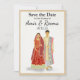 Sydostasiatiskt par i Illustrated Bröllop Spara Datumet