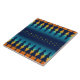 Inspirerad av de vackra solnedgångshimlarna och höga Ponderosa Tallar i Arizona, har denna originella konst skapats med en lysande orange, gul och blå solnedgångshimmel bakom geometriska ponderosa träd och stjärnor i ett sadelunderläggsmönster.