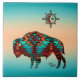Få ditt hem med den här unika "Ett av en sorts "Southwest Buffalo and Sol Ceramic Tile"! Den har sydvästra Buffalo och Sol på turkos och Orange Sunset Background! Detta är en originalkonstform av "ett av ett slag" av konstnären Kerry Miller.