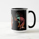 Sydvästra Feathers Kokopelli. Alien eller Life Form Sunset Kokopelli Coffee Kopp. Den inhemska amerikanska sydvästra Stil-Abstrakten spelar flute Cave Petroglyphs lycka till mugg. Kokopelli är en fertilitet gudom, en humplös flöjt spelare, inhemska amerikanska kulturer. Tillskrivs gamla utomjordingar eller stamkonst och inspireras av grottan och sten teckning. Underbar presentidé för dem som kärlek sydost kallade kopp, och planetens historia.