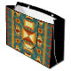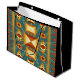 Ge Ge Bag med sydvästra Golden Sol Rays Stor Storlek Party Gift Bag med teckningsbild från TheFabricSeal på Zazzle. Elegant designad och färgad med vibrant gyllene orange, indiskt rött, guldgrädde, turkosblått och grönt plus jordbrun färg tillsatt. Den sydöstra andlig-stamkonsten påverkade stil formgivning för filtar, mattor och matta.