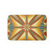 Bath Mat med Golden Indian Summer Sunset med teckningsbild av TheFabricSeal på Zazzle är ett vackert kreativ, upprepa mönster abstrakt konst som skildrar fantastiska andra sommarens sol-strålar tillsammans med vibrant sydväst-öknen och Indian-konst och färger med turkospolblått och grönt, gult, orange, rött, maron och grädda färg palett.