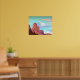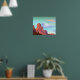 Skriv ut i en boho/minimalistisk illustration av ett terracotta-bergstoppe i sydvästra stil med ett aqua himlar