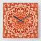 Sydvästra Sol Mandala Batik, korallOrangen Fyrkantig Klocka