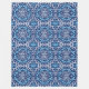 Fleece filt in a Southwest/Aztec inspirated batik Textil design in a sol dial/mandala mönster - navy/indigo blue and white, acced with cerulean blue