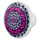 Knob i sydvästra/aztec inspirerade batik-textildesign i sol-ratten/mandala mönster-marinen/indigoblått och vitt, accentuerad med djup fuchsisk rosa