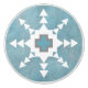 Med inspiration från sten, inslag och petroglyfer som är utmärkande för konstnärens omgivningar i sydväst, har denna originalgrafik en turkos och silver grått-bakgrund med geometrisk bakgrund för snöflingor, gräs träd gräns och hjort baserat på faktiska petroglyfer i Arizona och Utah.