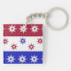 Den här designen gjordes med Artrage. Designad i en rektangel med rand av rött, vitt och blått. Stjärnorna är också röda, vita och blå. Detta är den amerikanska Flagga för helgdagarna. Dessa nyckelringar komar i akryl och är dubbla vid sidan om. De komar i kvadrat, rund eller rektangel.