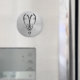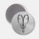 Denna starkt stiliserade symbol för Zodiac-tecknet Aries ser ut att vara utsliten ur det solida järn. En skugga faller över bakgrunden för rostfritt stål, vilket får symbolen att se ut att flyta precis ovanför yta i denna magnet.