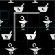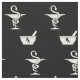 Ett beställnings- tyg som presenterar två häftesymboler av apotek en bunke av Hygenia och en mortel och en pestle med en fast svart bakgrund.