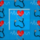 Medicinskt tema mönster av stetoskop och symboler för hjärtslag i röd, blå och vit vävnad, underbarare för alla slags hantverksprodukter